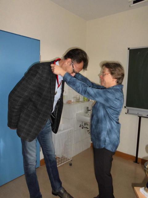 Abgerundet wurde diese Überraschungs-Ehrung mit einer Kaffeetafel, den leckeren Kuchen hatten die beiden Andreas (die dienstälteste Koordinatorin und die Chefsekretärin) gebacken. In dieser gemütlichen Runde fanden die beiden Geehrten, die zunächst sprachlos waren, auch ihre Worte wieder.