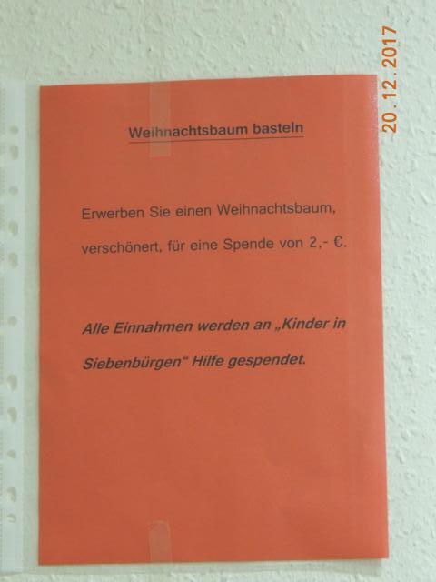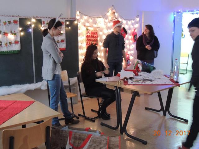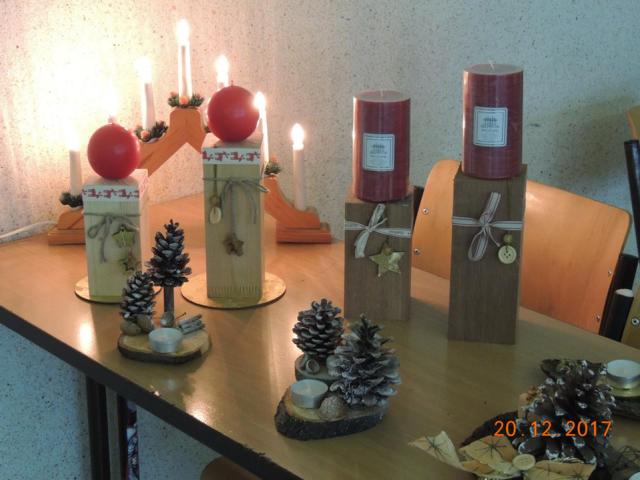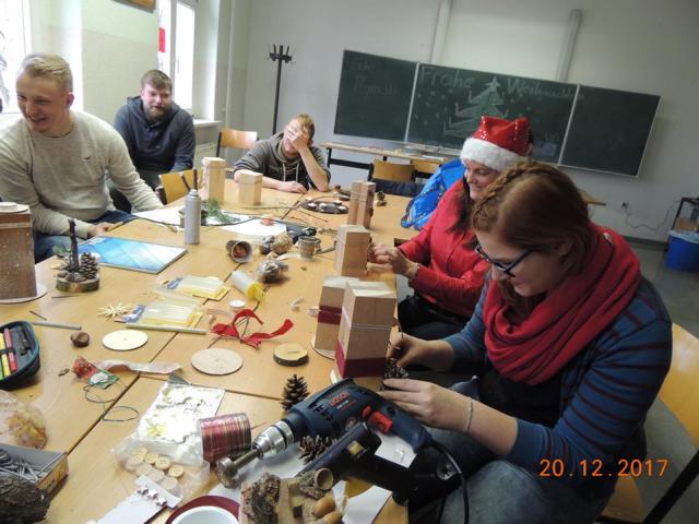 Am letzten Schultag vor den Weihnachtsferien hatte jede der acht anwesenden Klassen ein kleines Weihnachtsprojekt vorbereitet, welches sie den anderen Schülern des Standortes präsentierten. So wurden Holzweihnachtsbäume dekoriert, Holzarten bestimmt, Weihnachtsdekoration aus Holz gebastelt, Baumschmuck gestaltet, Sterne gebastelt, ein Kuchenbasar veranstaltet, eine Waffelbäckerei eröffnet und ein Fotostudio betrieben. Über die Schullautsprecher lief weihnachtliche Musik, welche für eine ebenso weihnachtliche Atmosphäre sorgte. Schüler und Lehrer waren sich hier schnell einig – nächstes Jahr am letzten Schultag vor den Weihnachtsferien auf ein Neues – also alle Jahre wieder…