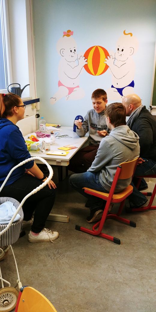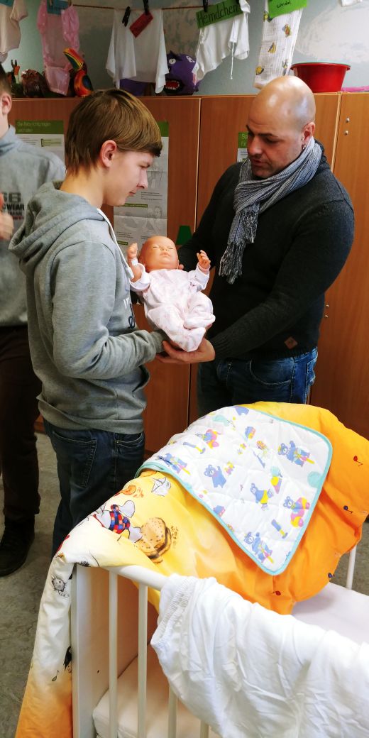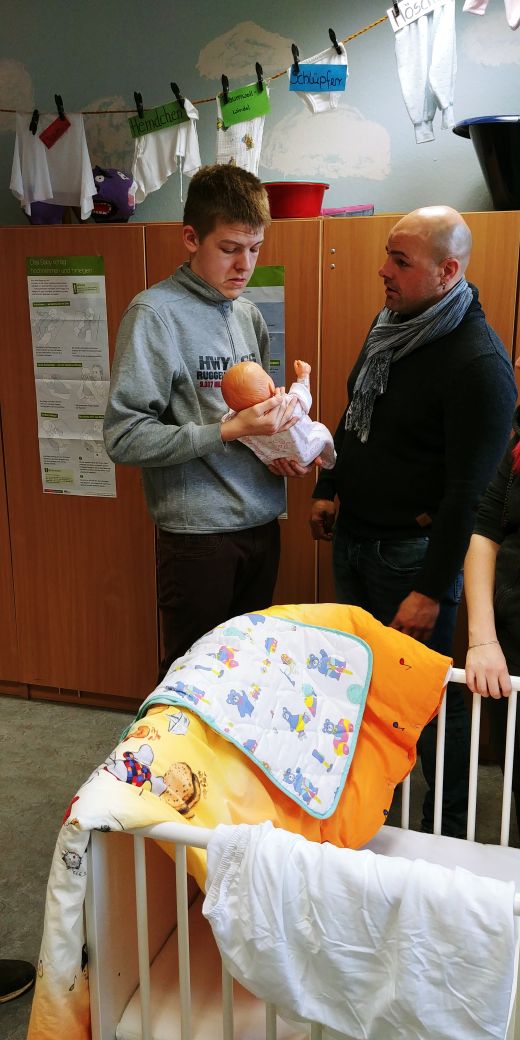 Am 19.01.18 bekamen wir Besuch von der Reinhard- Lakomy- Schule Halberstadt, um das Projekt „Mit einem Kind leben“ zu unterstützen. Als die Klassenlehrerin Frau Großmann anfragte, ob wir unser Wissen über Säuglingspflege an ihre acht Schüler/innen weitergeben würden, zögerten wir nicht.