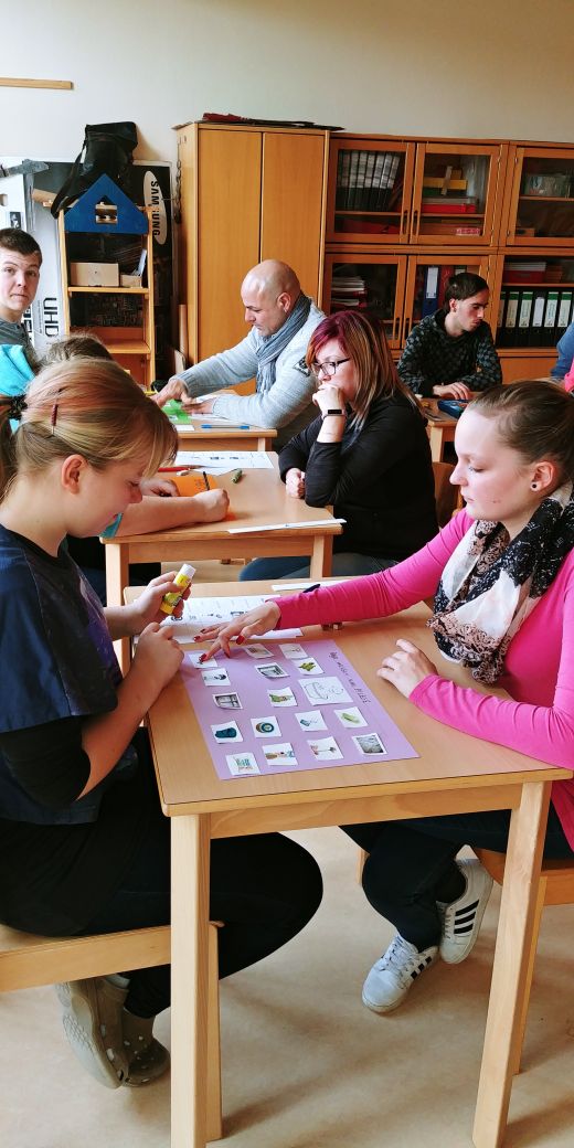 Kennenlernen wäre gut, so unsere Idee. Am 5.1.18 hatten wir Gelegenheit dazu. Wir fuhren in die R.- Lakomy- Schule, dort wurden wir von Frau Großmann, Frau Witte und der BIII a erwartet. Durch die gemeinsame Anfertigung von Collagen stiegen wir in das Thema ein.