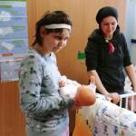 Wir hatten ebenso viel Spaß und waren beindruckt von der Aufmerksamkeit der Schüler. Dafür erhielten alle ein Zertifikat für „Erste Kenntnisse in der Säuglingspflege“. Auch wir wurden beschenkt. Das „Stimmungsbarometer“ aus Schokolinsen werden wir uns nach Bedarf schmecken lassen und uns gern an das Erlebnis erinnern.