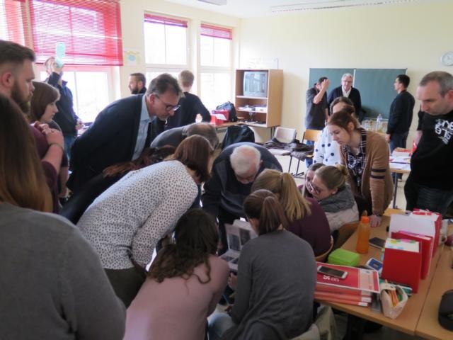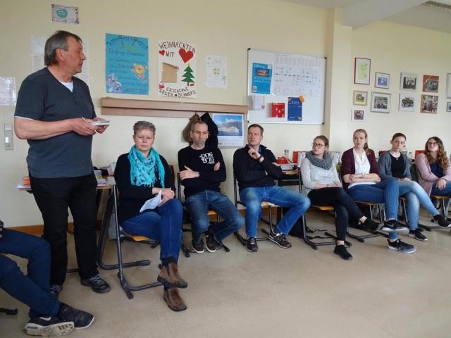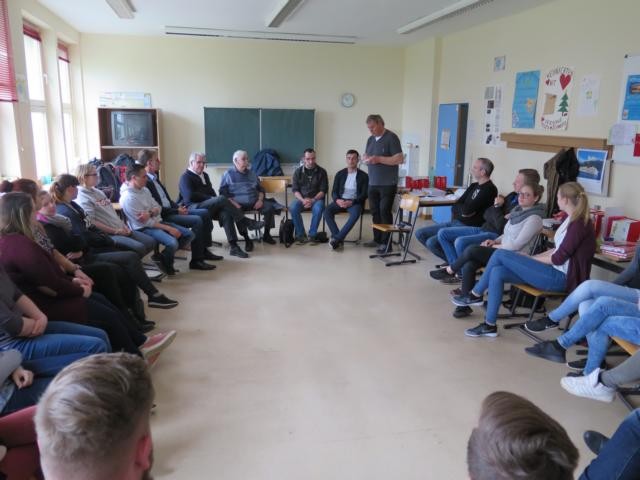 Im Rahmen der „Tage der Begegnung“ Langenstein-Zwieberge nahmen Schüler und Schülerinnen der Klassen FOV 16, FOG 16, VAF 17, VGE 17 und VF 16 am 13.4. an Zeitzeugengesprächen teil. Die Gäste, die Familienangehörige ehemaliger Häftlinge des Konzentrationslagers Langenstein-Zwieberge sind und aus Lettland, Frankreich, Belgien und der Ukraine kamen, erzählten ihre Familiengeschichten.