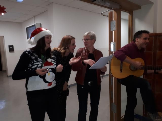Am Standort Neupertstraße fand das 2. Mal der nun schon traditionelle Weihnachtsbasar am letzten Schultag des Jahres 2018 statt. Begonnen wurde dieser Tag mit dem sogenannten Treppenhaussingen zu neuen und traditionellen Weihnachtsliedern. Äußerst motivierend eingestimmt von unserer Standortkoordinatorin Frau Fleddermann und unserem Schulsozialarbeiter Herrn Kallenberger. Zugegeben im nächsten Jahr muss mit den beteiligten Lehrkräften und Schülern im Vorfeld noch kräftig geübt werden.