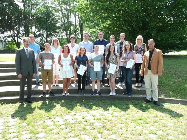 Unten von links:         Klaus-Dieter Ahrent (Schulleiter), Niclas-Jan Seidler (Berufsvorbereitungsjahr Agrarwirtschaft, Farbtechnik und Oberflächentechnik), Mark Schulz (Berufsvorbereitungsjahr Agrarwirtschaft, Farbtechnik und Oberflächentechnik), Gina Marie Kaufmann (Berufsvorbereitungsjahr Gesundheit, Pflege, Körperpflege/Ernährung und Hauswirtschaft), Christine Meier (Kauffrau für Büromanagement), Lee-Ann Kaiser (Fachoberschule Wirtschaft und Verwaltung, Schwerpunkt Verwaltung und Rechtspflege), Mario Lange (stellvertretender Schulleiter)